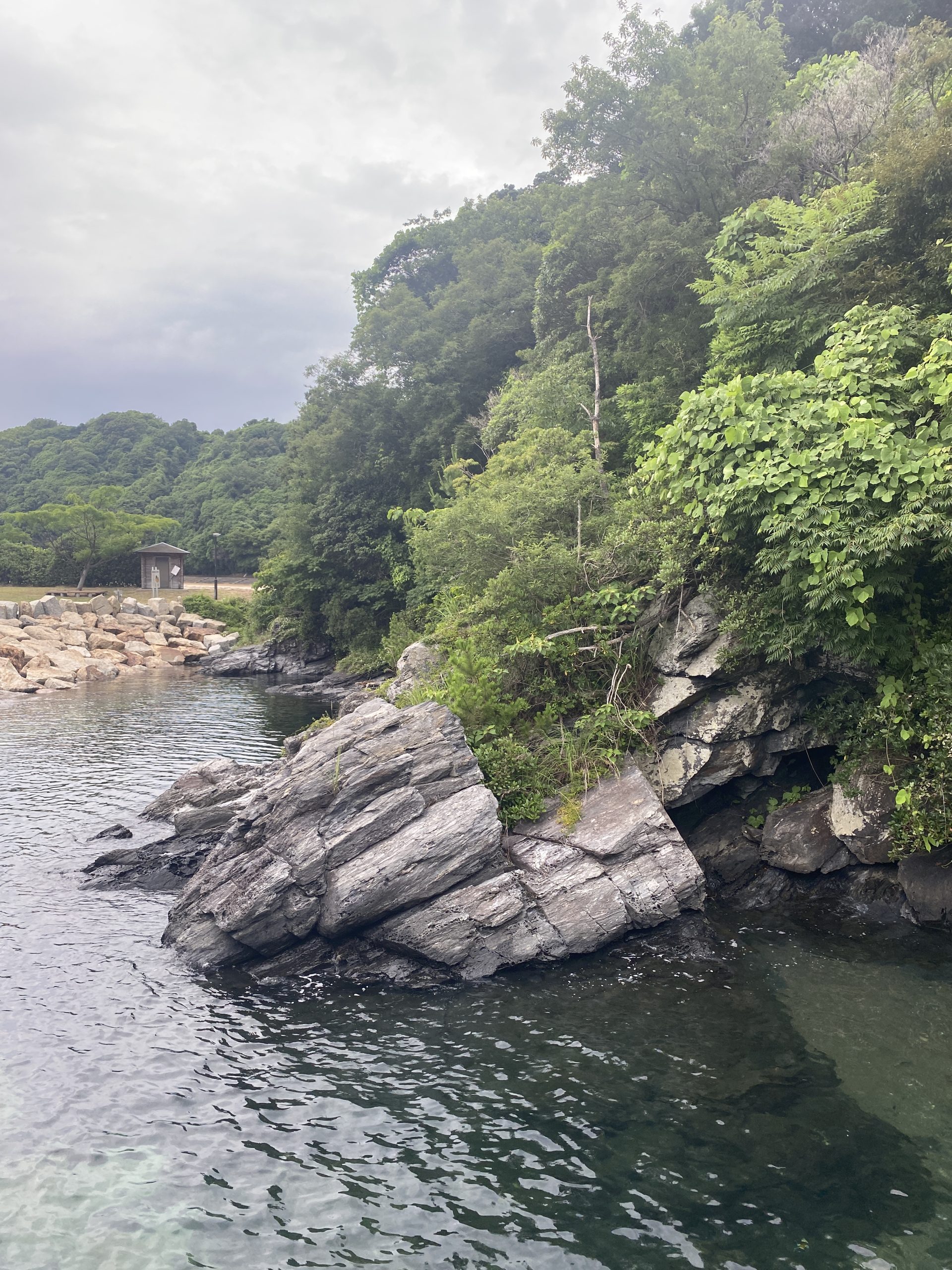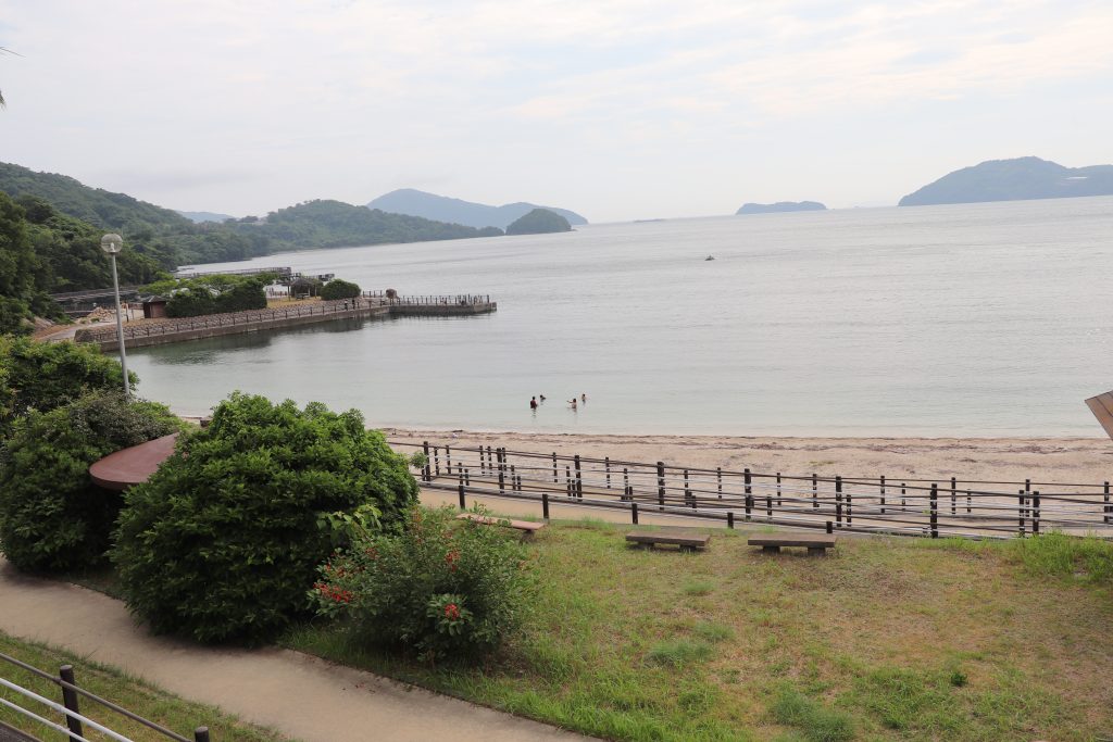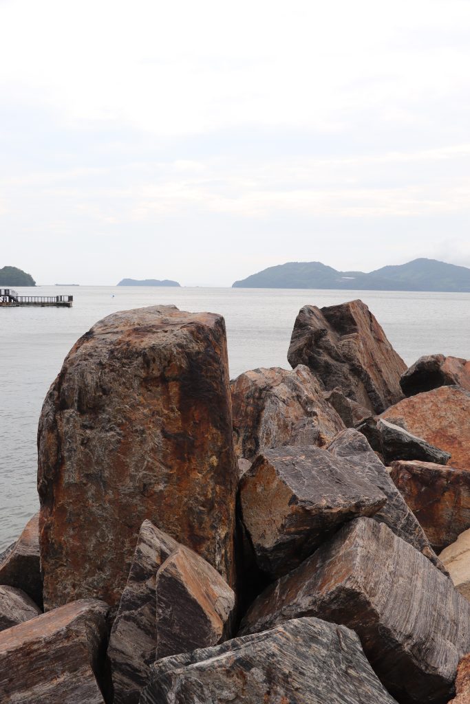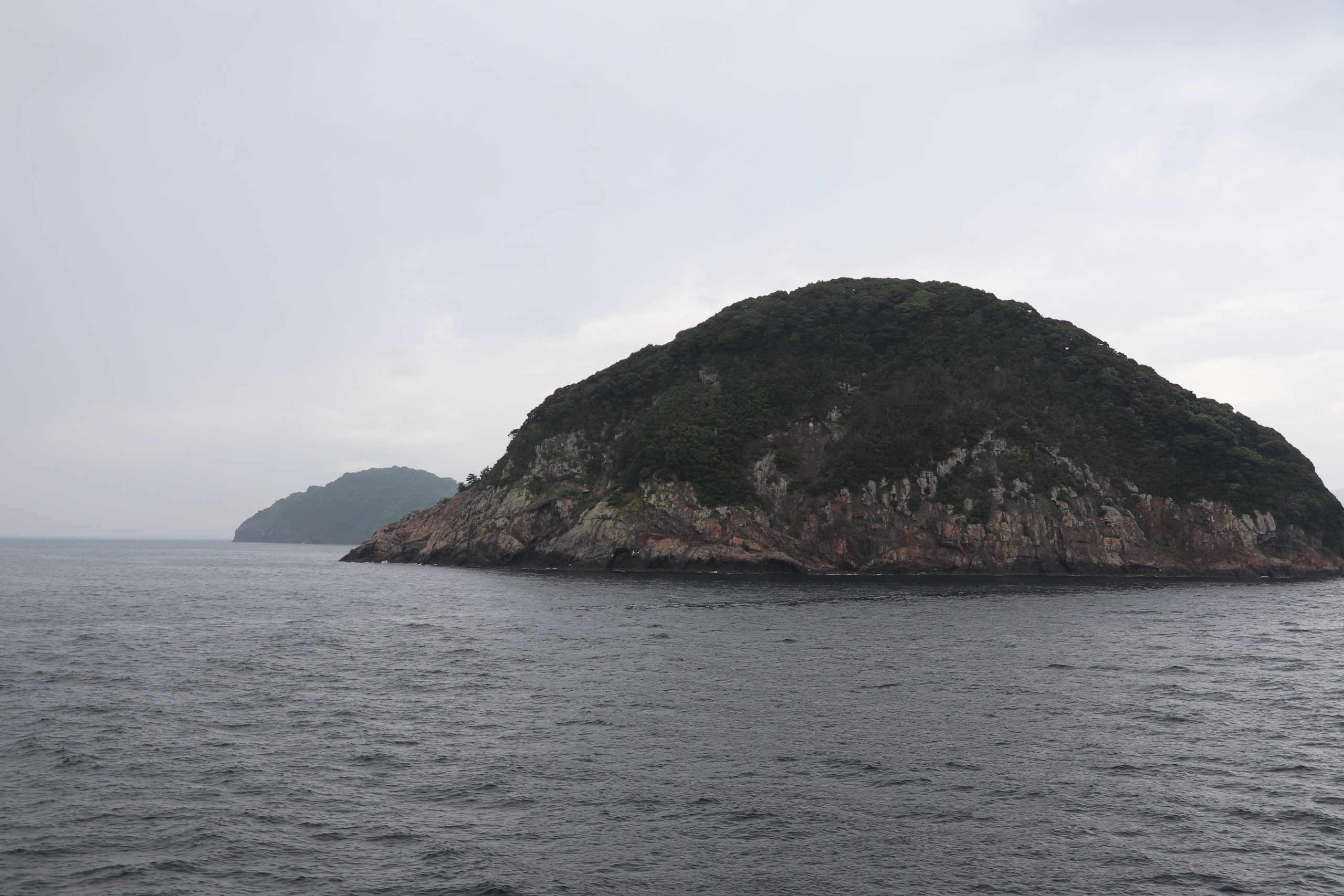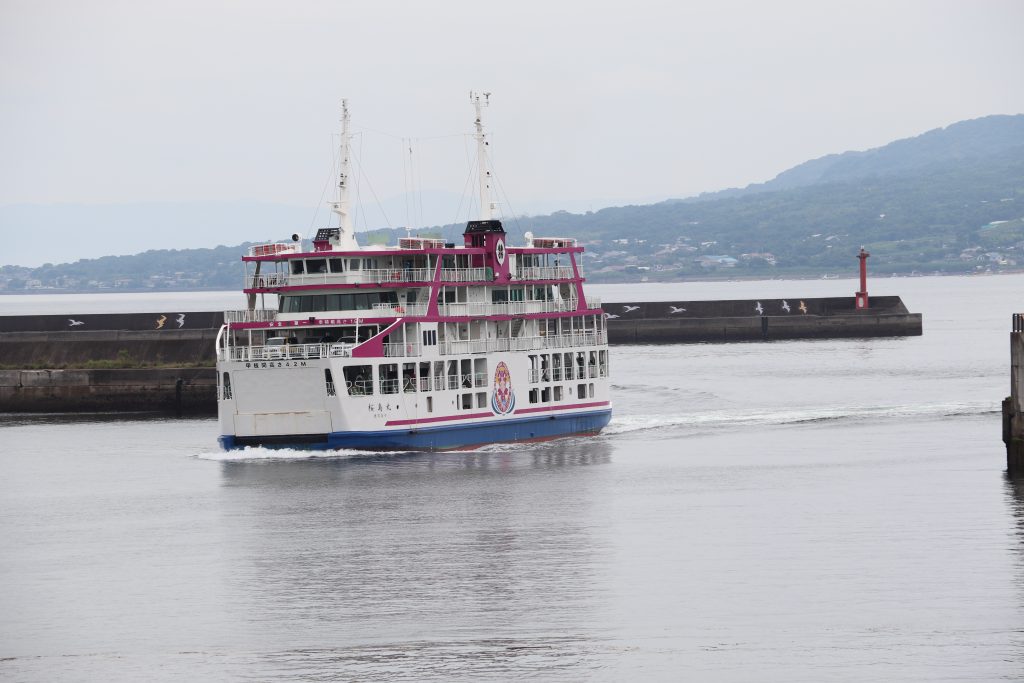 On Saturday June 21, 2025 my sons, IV and II, hopped in the van with camping equipment and a general idea of direction and took off to see Japan. Our goal was to see all four main islands of Japan mainland, see Fuji-san close-up, and take II to see Tokyo since he hasn’t spent much time there. We headed west toward Kyushu first. Our first stop was Hanaguri Public Beach. The sky was overcast and the water was a beautiful blue but cold. The boys swam for a short time. We then went to Viking Yakiniku and Sushi Buffet and ate our fill of grilled meats. That night we slept in the van in the parking lot of the Suonada Ferry Station while it rained. Early the next morning while walking around on the docks and taking photos, I met an older man who was exercising. He told me that he is an origami artist and gave me a card. Then he said he would make me and the boys origami. He stopped by the van and met the boys before he walked from the dock area. I didn’t see him again before we left because a short while later we drove the car onto the Tokuyama-Taketazu Ferry and headed to Oita Prefecture.