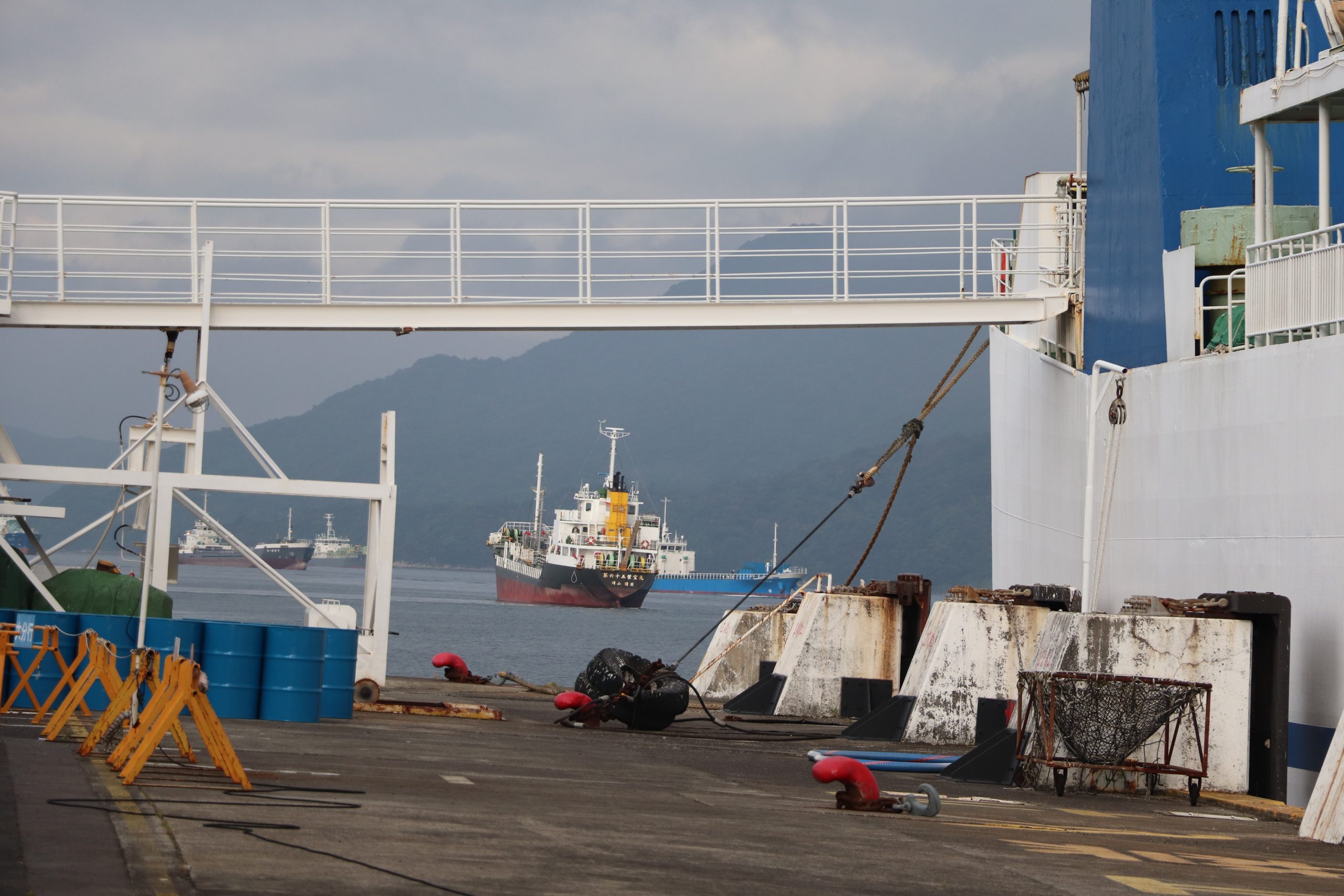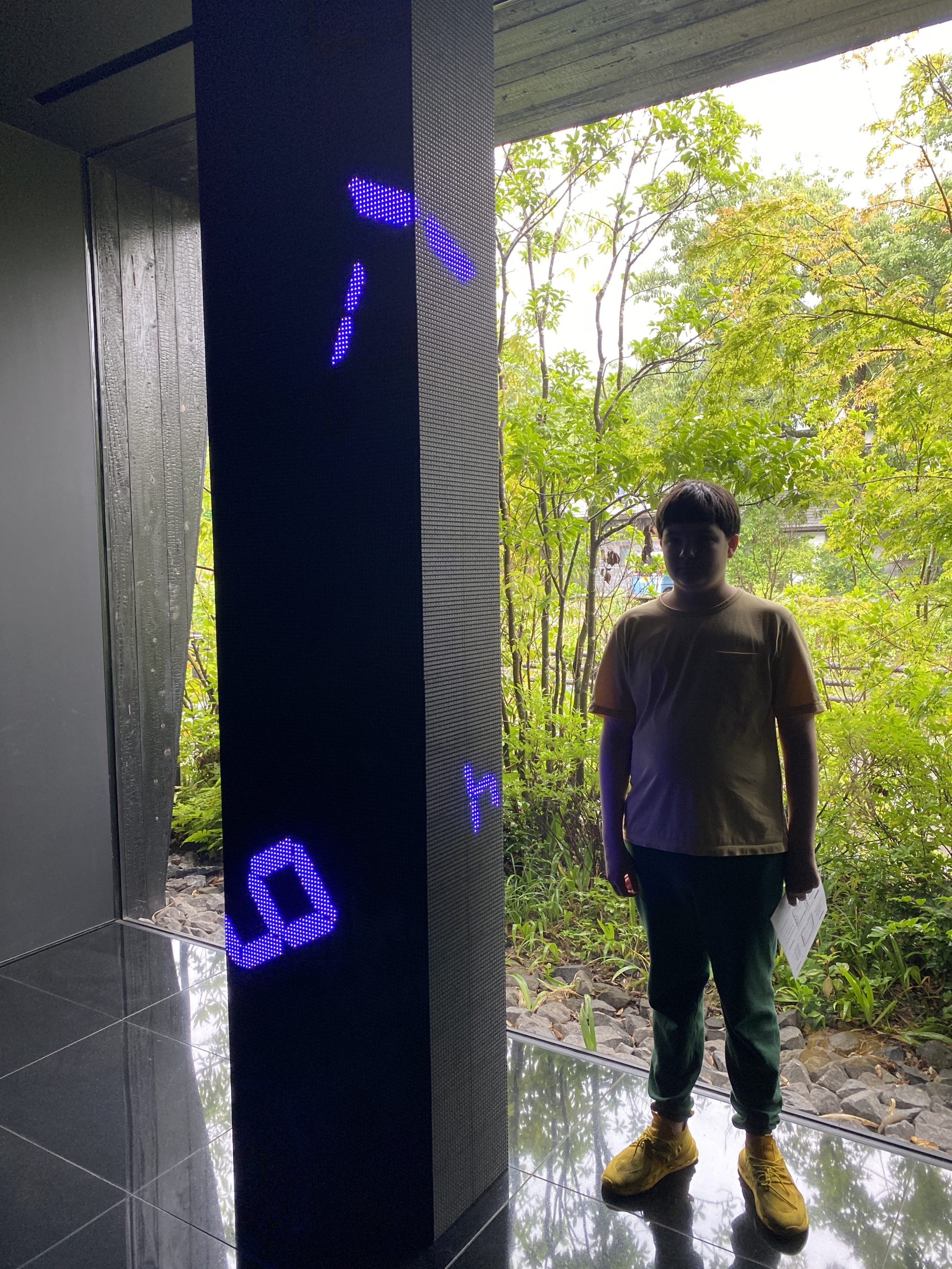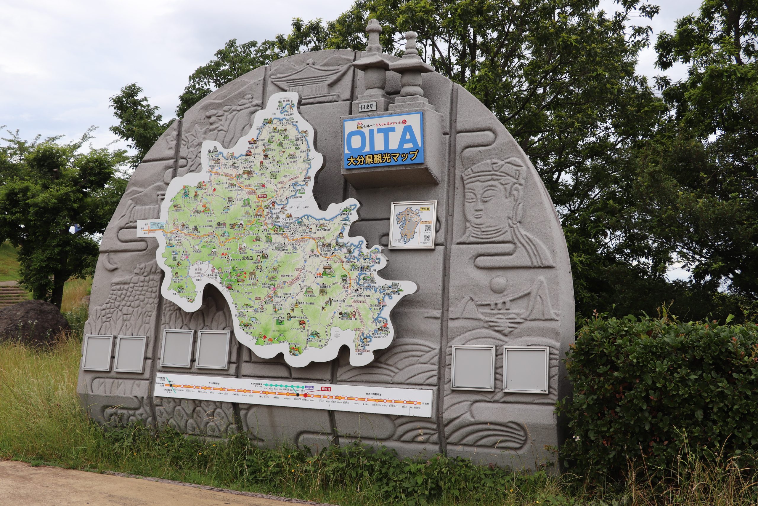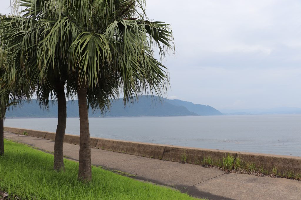 On Saturday June 21, 2025 my sons, IV and II, hopped in the van with camping equipment and a general idea of direction and took off to see Japan. Our goal was to see all four main islands of Japan mainland, see Fuji-san close-up, and take II to see Tokyo since he hasn’t spent much time there. We headed west toward Kyushu first. Our first stop was Hanaguri Public Beach. The sky was overcast and the water was a beautiful blue but cold. The boys swam for a short time. We then went to Viking Yakiniku and Sushi Buffet and ate our fill of grilled meats. That night we slept in the van in the parking lot of the Suonada Ferry Station while it rained. Early the next morning while walking around on the docks and taking photos, I met an older man who was exercising. He told me that he is an origami artist and gave me a card. Then he said he would make me and the boys origami. He stopped by the van and met the boys before he walked from the dock area. I didn’t see him again before we left because a short while later we drove the car onto the Tokuyama-Taketazu Ferry and headed to Oita Prefecture.