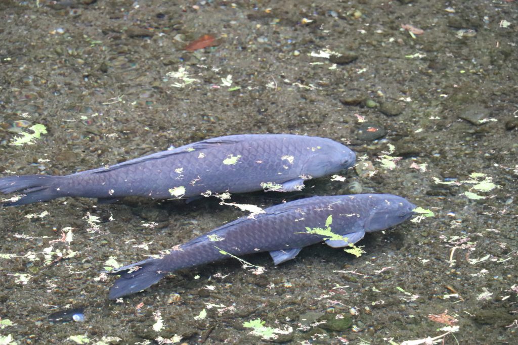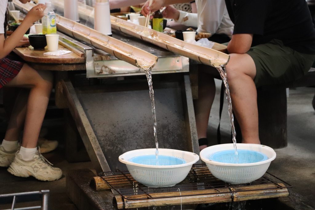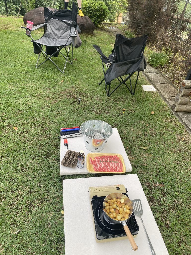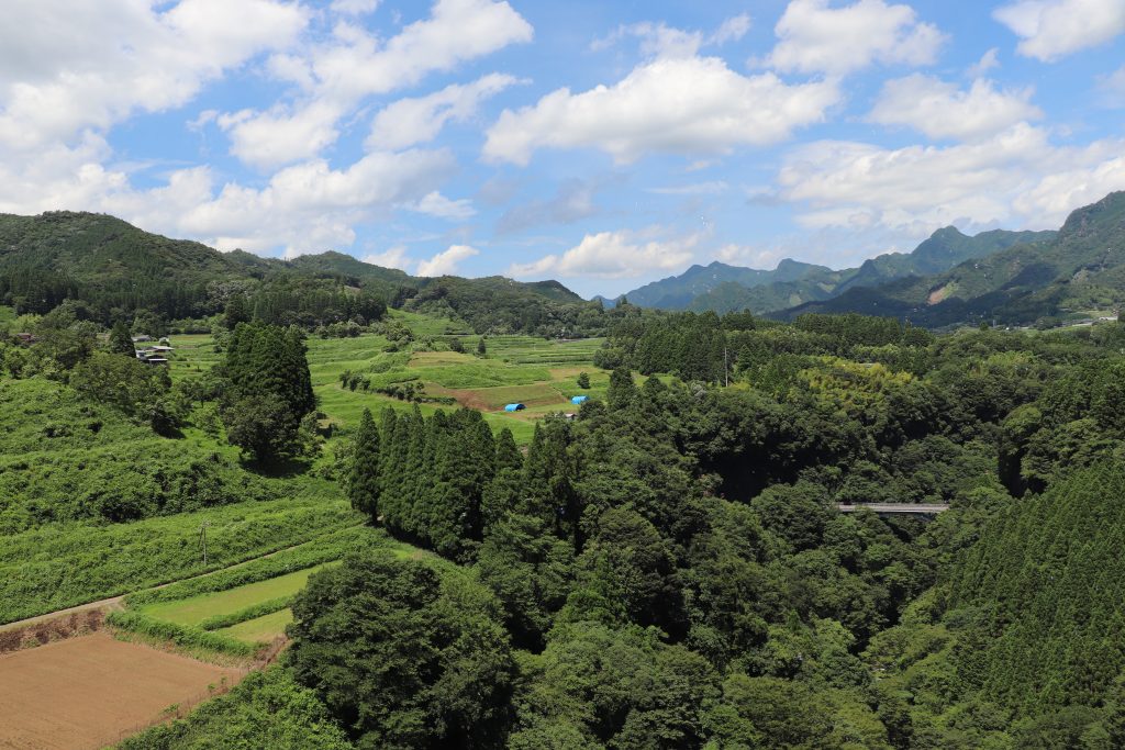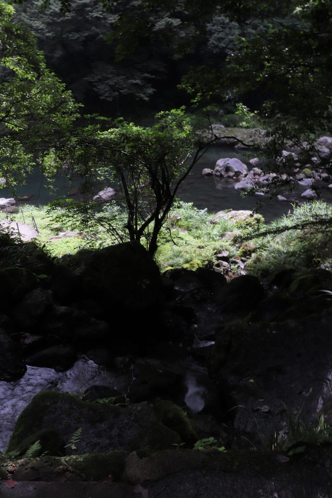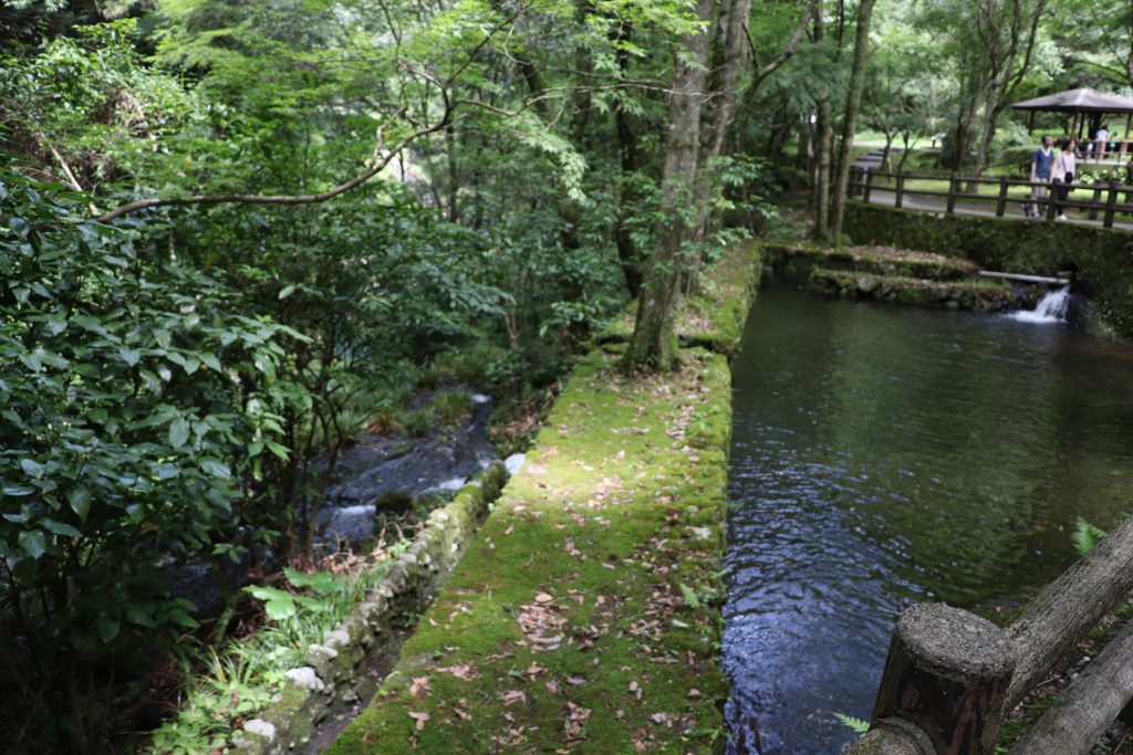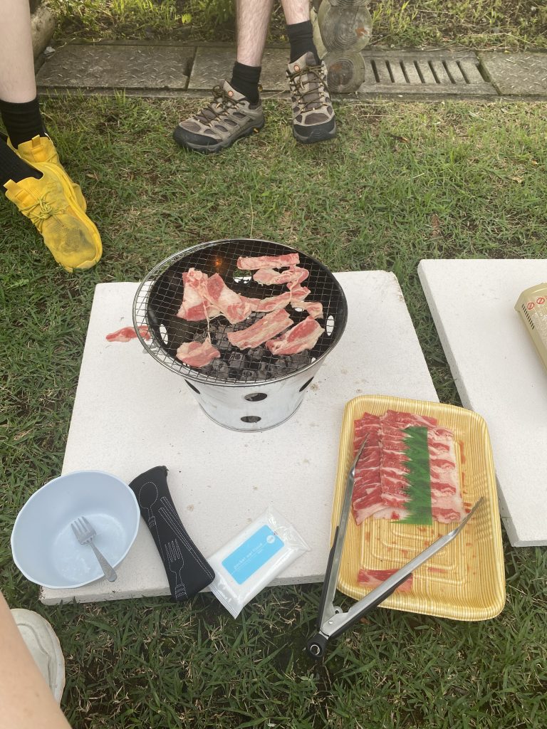 When we got to Kyushu we decided that camping wasn’t the best idea since it had been raining the better part of a day and showed no signs of letting up. Our Takachiho Gorge boating was cancelled so we decided to stay in the area we were already in and wait for better weather to see the gorge. We drove to Yufu where we stayed in a renovated Japanese home by a river. The property was listed as a B&B which stood for Book and Bed. The office next-door and the property itself was filled with bookshelves of Art and History books. Sadly, I still don’t read Japanese. I liked looking at the pictures though. The owner offered us use of a barbecue and the neighbor had a farm stand where you could get tomatoes and cucumbers for 100 yen.