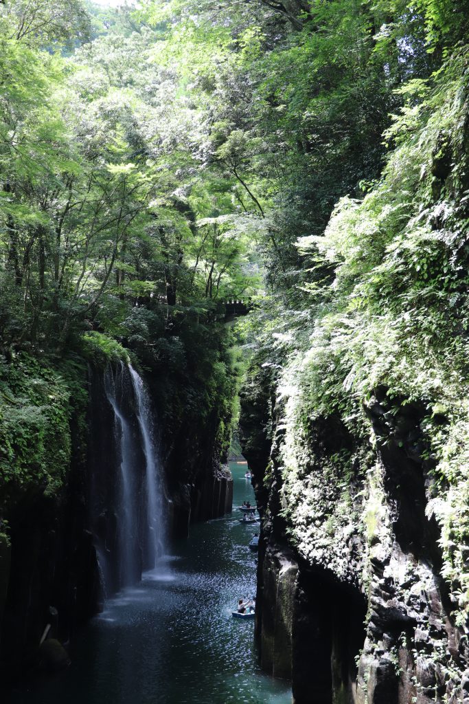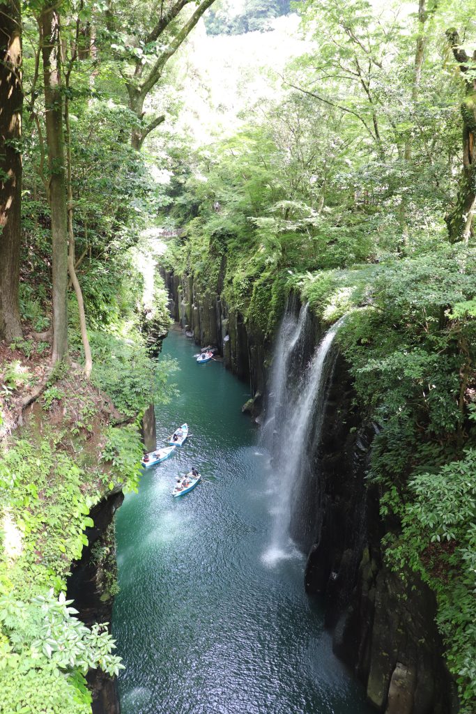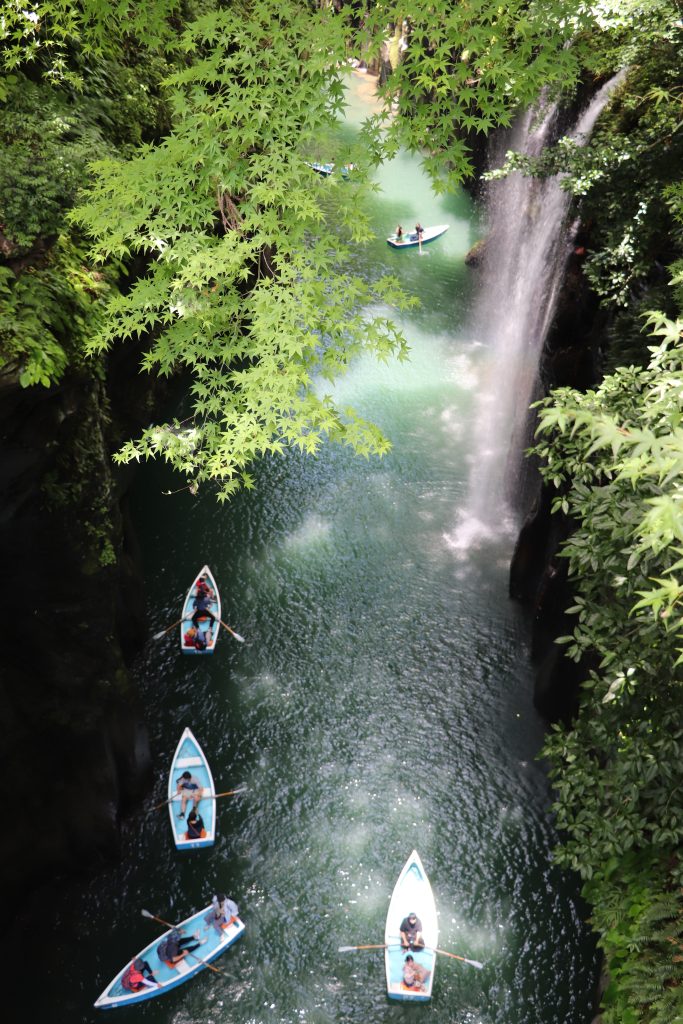 With the weather clearing, we decided to go back north toward Takachiho Gorge. The waterfalls, lush greenery, and volcanic rock make for a beautiful hike. We also found an open-top train with disco tunnels and a very high bridge. We camped near the gorge and got to use our scouting skills for a few days.